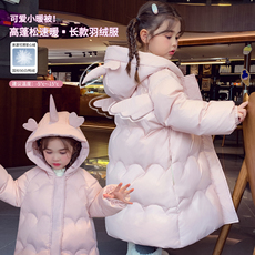 女童国标90白鸭绒外套长款女孩冬季保暖羽绒服2025新款儿童面包服