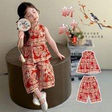 女童背心套装夏装2025新款女宝韩版洋气薄款儿童夏季防蚊裤休闲装