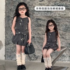 女童吊带西服泡泡裤裙套装夏款2025新款儿童女宝洋气时髦穿搭夏装