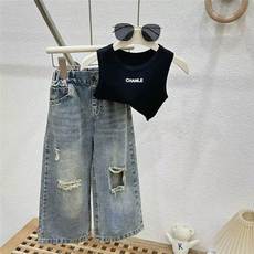 儿童夏季新款套装2025夏装女宝洋气吊带女童时髦破洞牛仔裤两件套