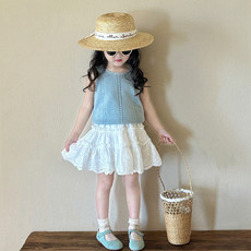 INSbobo女童花边背心两件套时尚清新女宝夏装套装2025新款洋气