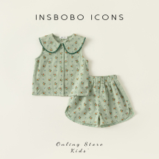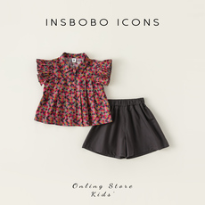 INSbobo儿童套装清新印花男童夏装2025新款时髦女宝衬衫两件套
