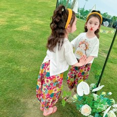 女童夏季套装2024新款网红女宝纯棉短袖宽松防蚊裤小女孩儿童夏装