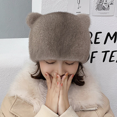 水貂女帽双层加厚甜美可爱貂毛冬季新款皮草女帽裘皮编织女款帽子