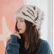 紫貂毛贝雷帽编织皮草帽子弹力包头护耳女帽双面水貂毛帽子冬冷帽