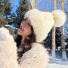 韩版季水貂毛针织羊绒皮草帽子冬季狐狸毛毛球女帽保暖冬季护耳