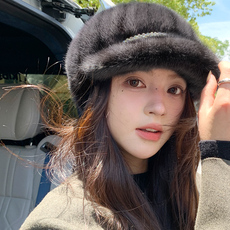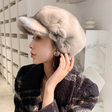 宾雅图 秋冬新款 整皮水貂毛皮草帽子 韩版软体鸭舌貂皮女帽