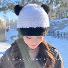 黎宿简约双面真毛紫貂毛编织皮草帽子弹力包头护耳女帽水貂毛帽冬