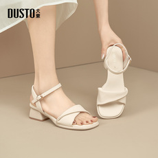 大东凉鞋女2025夏季新款女鞋粗跟中跟交叉绑带休闲圆头女凉鞋一字