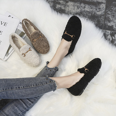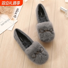 2025秋冬新款平跟毛毛鞋女棉瓢鞋单鞋加绒外穿尖头平底豆豆鞋单鞋