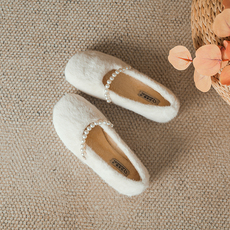 加绒毛毛玛丽珍鞋女冬珍珠一字带内增高浅口棉瓢鞋芭蕾舞平底单鞋