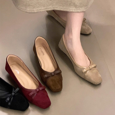 蝴蝶结方头浅口单鞋女平底瓢鞋平跟软底芭蕾婚鞋舒适开车孕妇四季