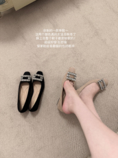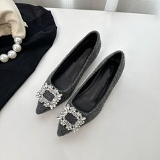 2024春季新款韩版时尚水钻百搭尖头单鞋女平底浅口瓢鞋船鞋女鞋