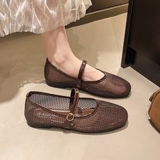 仙女风平底单鞋子女瓢鞋2025年夏季圆头浅口网面透气软皮玛丽珍鞋