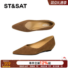 达芙妮尖头单鞋女款2025新款秋棕色法式平底鞋瓢鞋内增高女士皮鞋