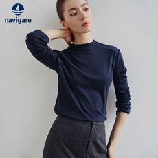 Navigare意大利小帆船修身圆领长袖T恤女士新款莱赛尔打底体恤衫