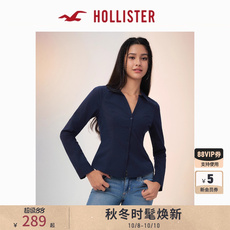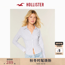 Hollister25秋冬新款Y2K美式辣妹修身府绸系带衬衫女装340-5510