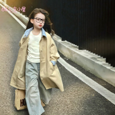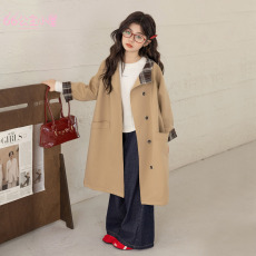 66公主童装女童风衣2025春秋新款女孩英伦风洋气中长款外套上衣