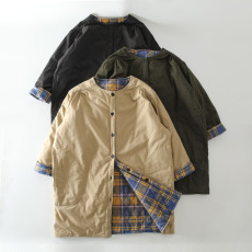 冬季新款文艺复古夹棉两面穿中长棉衣外套女宽松百搭保暖棉服风衣