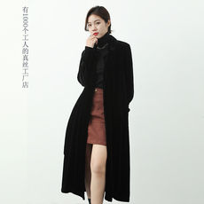 2024秋冬新款高级感黑色气质优雅修身大衣复古真丝丝绒风衣外套女