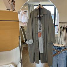 微胖的喵喵大码女装胖mm早秋季新款韩系气质长款宽松风衣外套3184