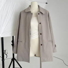 时尚中长款Polo领风衣外套2025秋冬新款大码女装宽松百搭上衣女