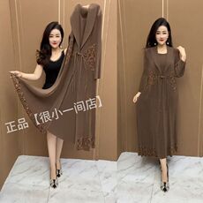 中年妈妈时尚民族风假两件外套2025新款收腰显瘦遮肚长款风衣裙女