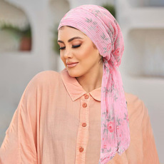 cap turban 印花压皱小碎花头巾帽百搭女性长尾绑带套头帽子时尚