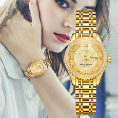 天然真钻18k全金色手表女士全自动机械表高档奢华正品牌防水十大