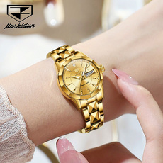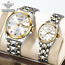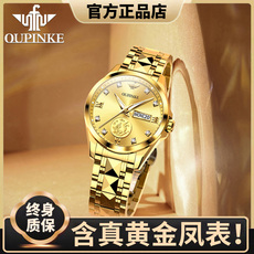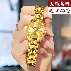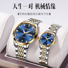 瑞士认证正品牌含真黄金情侣手表一对机械表进口芯防水男女款对表