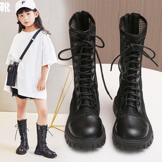 女童靴子夏季马丁靴女款儿童长筒靴夏透气薄款网面小女孩黑色鞋子
