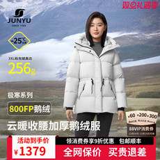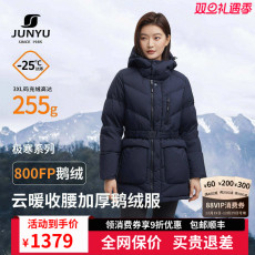 君羽户外800蓬鹅绒服女中长款加厚连帽冬季时尚收腰女款羽绒服312