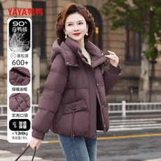 鸭鸭90鹅绒加厚羽绒服女款2025秋冬新品连帽立领加厚保暖短外套A