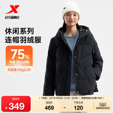 特步有暖气羽绒服女款2025冬季加厚连帽外套保暖防泼水羽绒上衣女