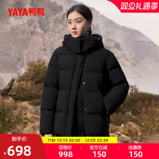 鸭鸭羽绒服女款2025秋冬新品爆款过膝长款连帽黑色加厚保暖外套A