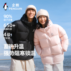 企鹅雪泡芙90鸭绒羽绒服女款25冬季新款加厚连帽短款面包服外套男