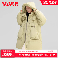冬上新!M~2XL码雅L家女款冬季纯色修身中长款加厚连帽羽绒服外套
