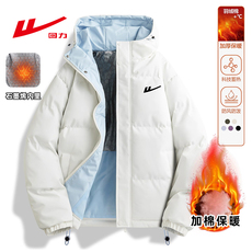回力连帽棉服女款2025年冬季新款加厚保暖棉袄情侣款羽绒棉衣外套