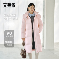 艾莱依冬季羽绒服女款长款新款连帽气质大衣修身加厚收腰休闲外套