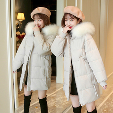 棉服女冬季中长款韩版孕妇大毛领棉衣女大码加厚保暖羽绒棉袄外套