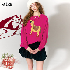 妖精的口袋玫红色小马圆领卫衣女2026年春新款小个子宽松休闲上衣