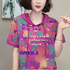 玫红色短袖卫衣女连帽宽松纯棉2023新款夏韩版ins半袖带帽T恤上衣
