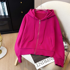 多巴胺高级感玫红色卫衣拉链新款秋季韩版减龄显瘦连帽女长款外套