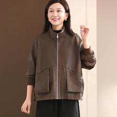 复古咖色pu皮衣短外套女春秋韩版时髦气质宽松显瘦工装皮夹克