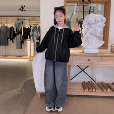 女童秋冬韩版设计感可拆卸毛线帽皮衣外套初中生超好看休闲夹克潮