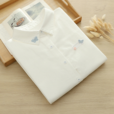 2025秋季文艺小清新刺绣绚烂花丛纯棉白衬衫女长袖打底衫学生大码