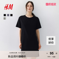 HM女装连衣裙2025秋季新款宽松喇叭袖罗纹简约舒适短款裙1268201