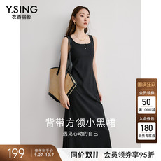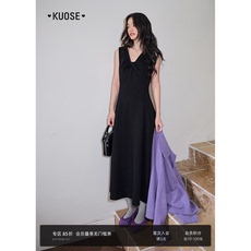 晚白2025早秋新款法式赫本风气质黑色背心裙通勤收腰无袖连衣裙女