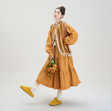 YINER音儿专选秋季女装法式撞色木耳花边通勤风连衣裙