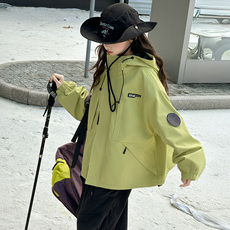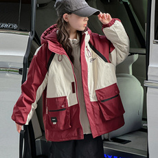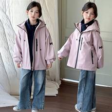 女童秋冬款冲锋衣外套2025新款三合一刺绣大口袋大童儿童连帽